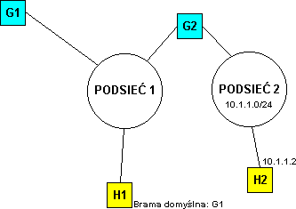 Urządzenia podłączone do sieci pamiętają listę bram, poprzez które mają dostęp do urządzeń znajdujących się w innych podsieciach. Jedna spośród nich jest bramą domyślną. Jeśli dostępnych bram jest więcej niż jedna, mogą się zdarzać sytuacje, że pakiet zostanie wysłany do niewłaściwej. Przykład wymiany komunikatów w takim przypadku przedstawia rysunek. Bramą domyślną dla urządzenia H jest G1. Jeśli H nie posiada w swojej tablicy routingu wpisu dokąd kierować pakiety przeznaczone dla sieci 10.1.1.0/24, zostaną one wysłane poprzez G1. Brama G1wykonuje następujące czynności: