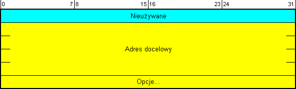 Poszukiwanie adresu - Neighbor Solicitation (ICMPv6) Typ komunikatu: 135 Kody: nieużywane - zawsze 0 Format wiadomości: